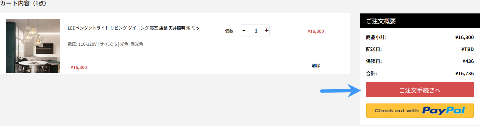 お支払い手続きが完了した後、商品がお手元に届くまでお待ちください。