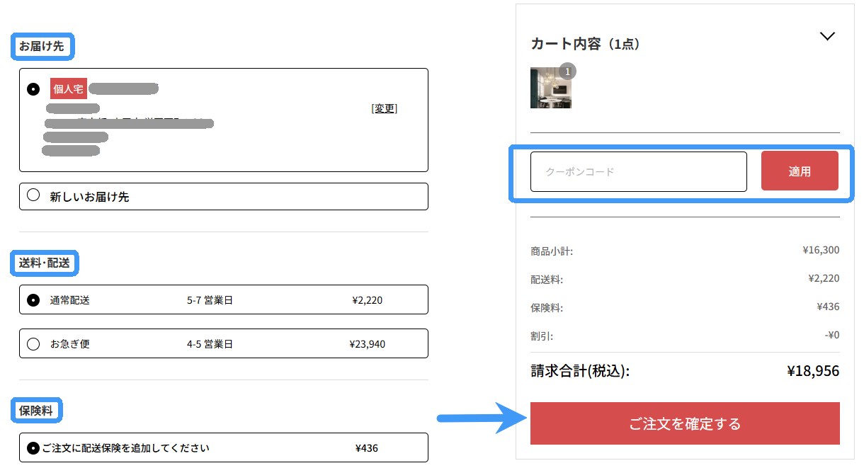 (4)クーポン使用するか確認してください。